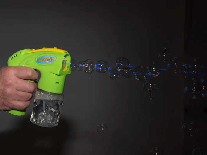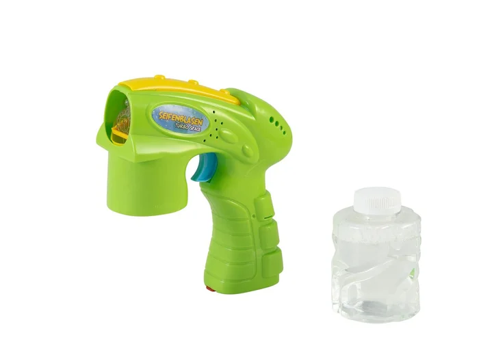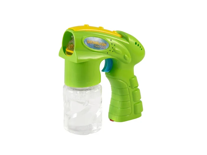 Technische Daten:Schutzklasse:SK IIIStromanschluss:Batterie/AkkuBatterie:3 x Mignon (AA) (nicht im Lieferumfang)LED-Typ:1 x 5 mm blau (B)Ausstoßweite:Ca. 1 mMaterial:KunststoffGewicht:0,31 kgGerätGehäusefarbe:HellgrünMaße:Länge: 13,5 cmBreite: 6 cmHöhe: 15,4 cmGewicht:0,15 kgBehälterTankinhalt:0,16 l SeifenblasenfluidMaterial:KunststoffFarbe:TransparentGewicht:0,16 kgFluidFarbe:Regenbogen; transparent
