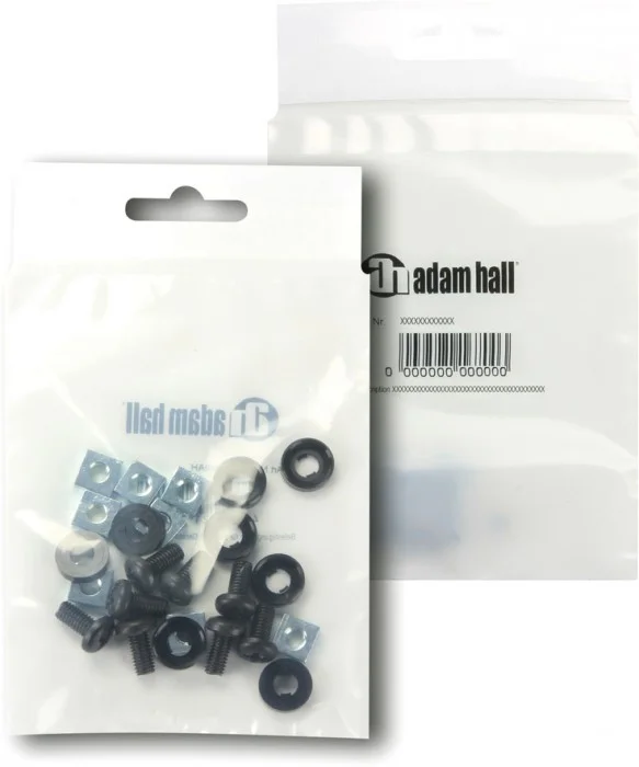 Befestigungssatz mit Vierkantmuttern für zwei 19“-Geräte im Blisterpack.