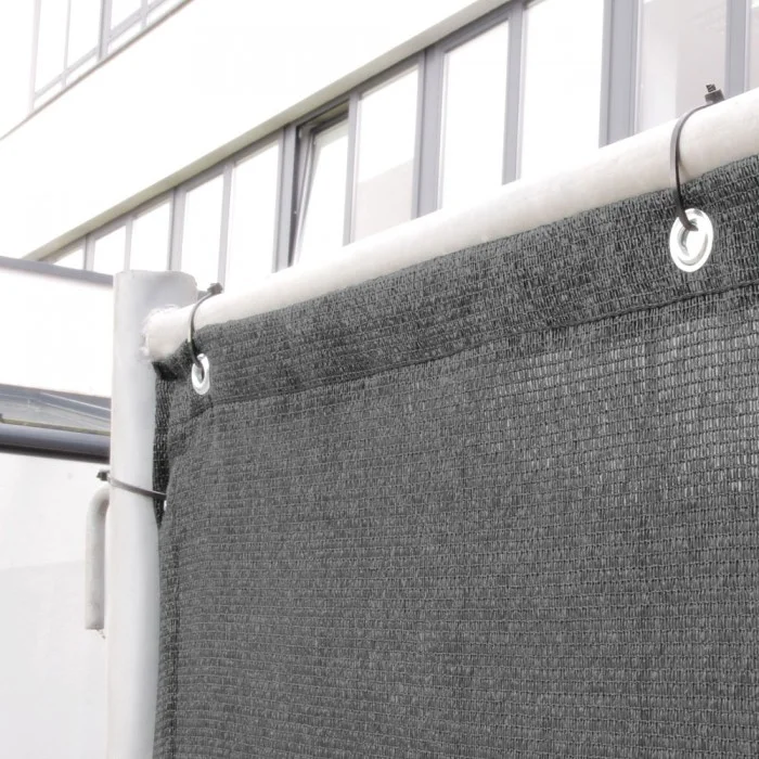 - PVC-verstärkter Saum und rundum geöst (Ösenabstand 50 cm)