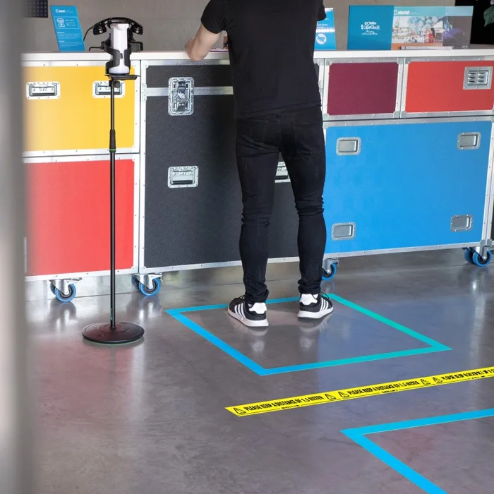 Das Adam Hall Social Distancing Warnband ist ein PVC-Klebeband, welches optimal für temporäre Gefahrenkennzeichnungen, sowie zum Aufkleben in Wartebereichen geeignet ist, damit Kunden oder Gäste den empfohlenen Abstand zur Reduzierung von Virusansteckungen von 2 m einhalten.