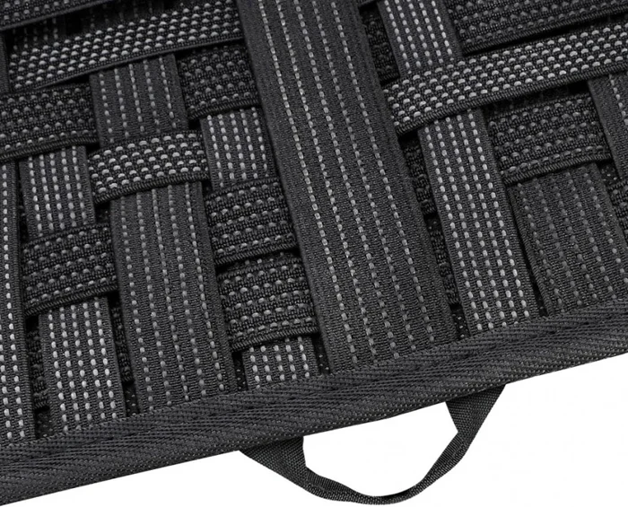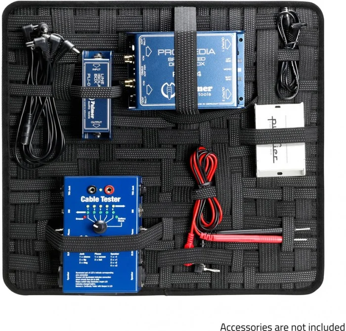 Mit ca. 250 Elastikbändern in einer ausgeklügelten Gitteranordnung bietet dieser Organizer Werkzeugen, Geräten und Kleingegenständen einen sicheren Halt. Das durchdachte System eröffnet unzählige Möglichkeiten für eine individuelle Einteilung und eignet sich hervorragend für Rackschubladen oder Aktenkoffer und Gigbags. Der clevere Organizer besitzt auf der Rückseite ein großflächiges Reißverschlussfach für Dokumente oder Handbücher. Zwei praktische Schlaufen zum Aufhängen ermöglichen zudem einen beweglichen Einsatz.