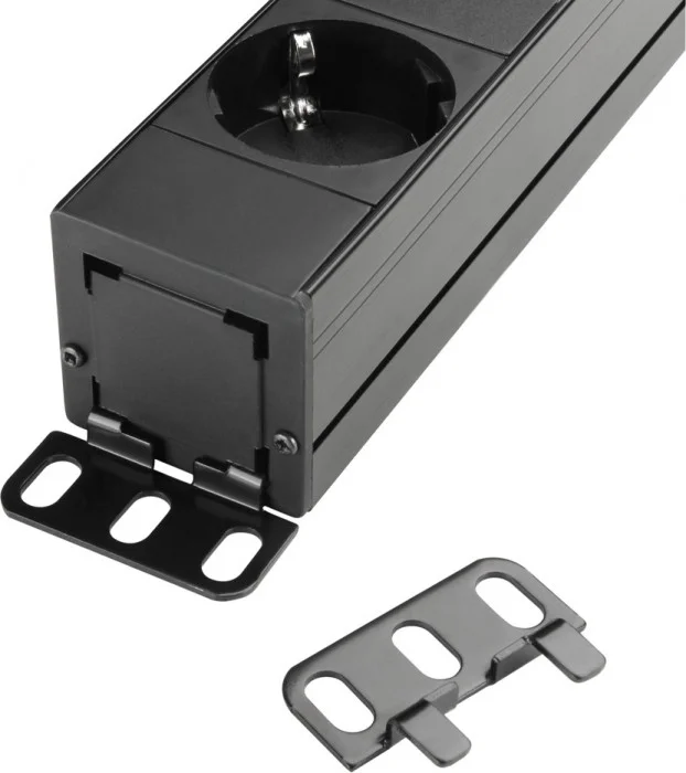 - Durch die umsteckbaren Befestigungslaschen kann die Steckdosenleiste in vier Positionen montiert werden.