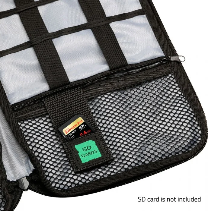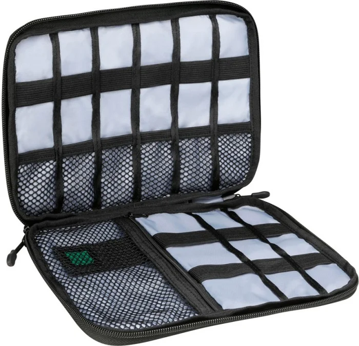 Orgaflex ist die perfekte, handliche Tasche zur übersichtlichen Anordnung von Zubehör, Kabeln und Kleinteilen. Elastische Bänder und Fächer aus Netzstoff halten den Inhalt fest und griffbereit am Platz. Die praktische Begleiterin für unterwegs ist aus wasserabweisendem Nylongewebe und mit einem robustem Reißverschluss ausgestattet.Spezifikationen: