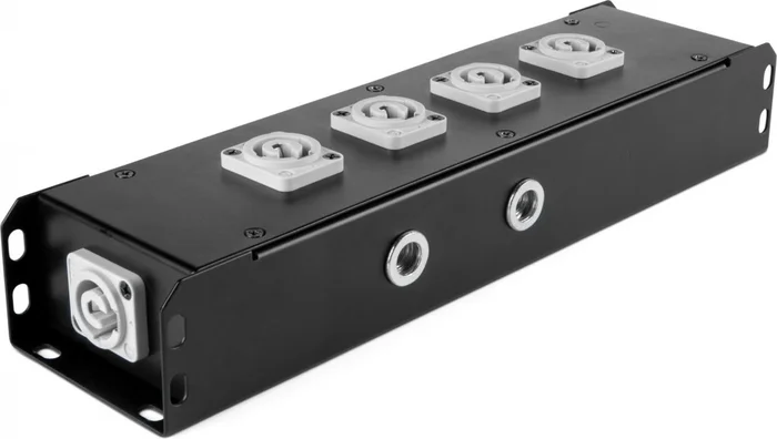 Der PROPORT 4PP ist ideal zur aufgeräumten und gezielten Stromverteilung auf Bühnen, an Traversen und in Equipment-Rigs. Das robustes Metallgehäuse besitzt eine Power Twist Netzeingangsbuchse und 5 Power Twist Ausgangsbuchsen, 4 davon auf der Oberseite des Verteilers. Zwei M10-Gewindeeinsätze dienen zur Aufhängung und fixen Montage.