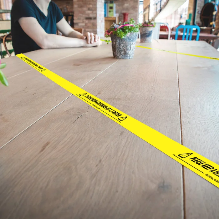 Das Adam Hall Social Distancing Warnband ist ein PVC-Klebeband, welches optimal für temporäre Gefahrenkennzeichnungen, sowie zum Aufkleben in Wartebereichen geeignet ist, damit Kunden oder Gäste den empfohlenen Abstand zur Reduzierung von Virusansteckungen von 1,5 m einhalten.