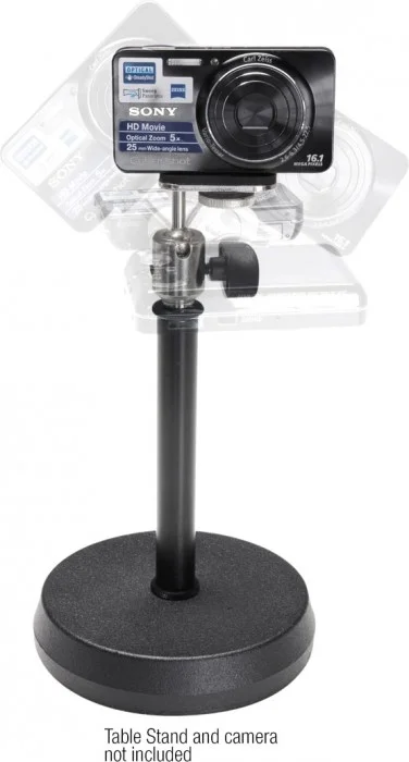 Mikrofonstativ-Adapter für Kameras, Camcorder, mobile Audio-Recorder und jedes andere kompatible Gerät mit 1/4″-Gewindeflansch, geeignet für Mikrofonstative mit 5/8″-Gewinde. Das Kugelgelenk ermöglicht die unabhängige Drehung und Neigung des montierten Geräts (Drehung bis 360°, Neigung bis 180°).