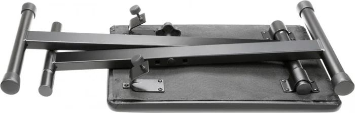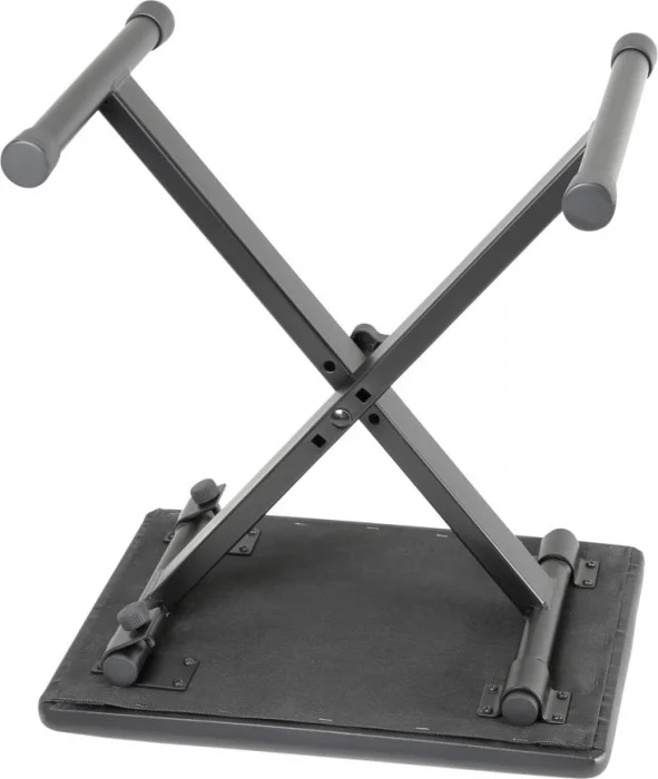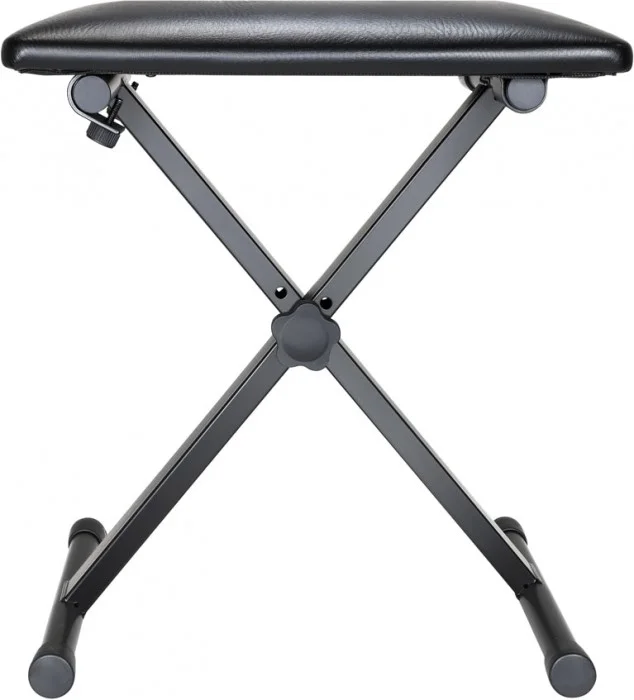 Die SKT 16 E ist eine bequeme Keyboard-Bank mit X-Stütze und einer 40,5 x 30,5 cm großen Sitzfläche. Die stabile und langlebige Konstruktion aus schwarz pulverbeschichtetem Stahl ist höhenverstellbar von 42 bis 48 cm. Die Füße besitzen rutschfeste Gummienden und lassen sich für einfachen Transport und platzsparende Lagerung komplett zusammenklappen.