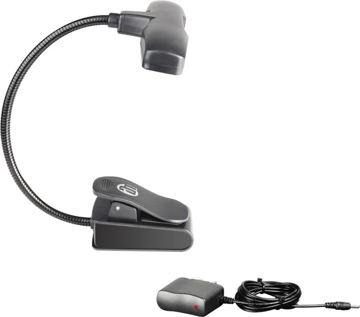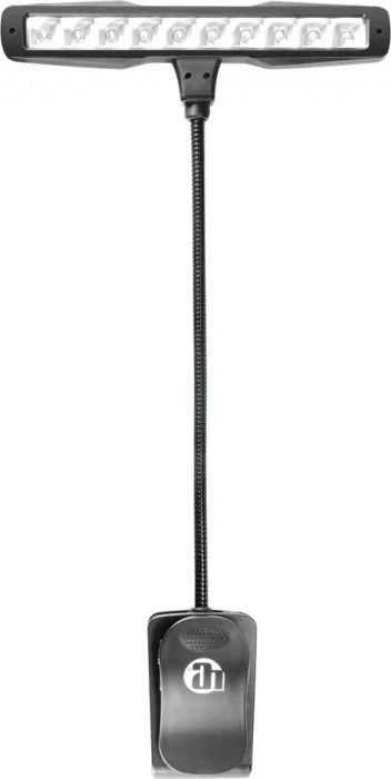 Die SLED10 ist eine sehr kompakte und handliche Notenpultleuchte mit geschütztem Design. Die 10 lichtstarken und effizienten LEDs sind in 2 Helligkeitsstufen einzeln schaltbar. Auch der Lichtkegel ist variabel einstellbar dank des flexiblen 220mm langen Schwanenhalses.
