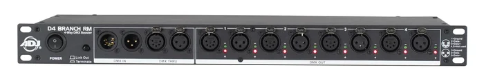 Der D4 Branch RM ™ ist ein 4-Wege-Verteiler / Booster 3-poligen und 5-poligen XLR-Eingangs- und Ausgangsbuchsen. Dieses Gerät nimmt das eingehende DMX-Signal auf und teilt es in vier (4) separate Ausgänge auf, die elektronisch voneinander isoliert sind, um unterbrechungsfreie Daten zu gewährleisten. Darüber hinaus verfügt jeder Ausgang über dedizierte Treiber zur Verstärkung des eingehenden Signals. Das Gerät verfügt über eine Link / Terminate-Taste zur einfachen Fehlerbehebung.