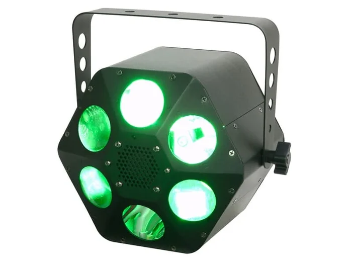 Der Quad Phase HP von ADJ füllt jeden Raum mit rasiermesserscharfen Strahlen und hinterlässt bei Ihrem Publikum einen Wow-Effekt! Dieses technologisch ausgereifte Moonflower-Gerät besitzt ein leistungsstarkes 4-in-1 Quad-LED-Leuchtmittel mit 32 W (RGBW). Während er so viele beeindruckende Farben wie eine „Tri-LED“ bietet, erzeugt der Quad Phase HP insgesamt bis zu 15 Farben.