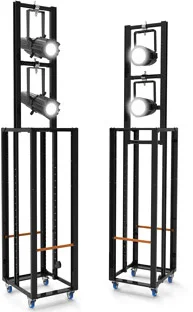 Montieren Sie Ihre Leuchten und transportieren Sie sie einfach mit unserem Sidelight Tower. Sidelight-Türme können mit beweglichen Köpfen, Theaterleuchten und anderen Beleuchtungskörpern ausgestattet werden. Die Position der Leiter kann symmetrisch oder asymmetrisch sein, je nachdem, welche Art von Beleuchtungskörpern Sie verwenden möchten. Während der symmetrische Turm für kleinere Beleuchtungskörper wie LED-Par-Strahler, kleine Moving Heads, Blinder oder Stroboskope geeignet ist, ist der asymmetrische Turm für größere Moving Heads und Profilscheinwerfer gedacht. Teleskopische Leiter: Die Leiter kann nach oben geschoben werden, so dass Sie Ihre Scheinwerfer bis zu 120 cm anheben können. Ein selbstaufrollendes Zugband hilft Ihnen, das System anzuheben, bevor Sie den Sicherungsstift einstecken, um die Leiter zu sichern. Durch die Montage eines zusätzlichen Rohrs im Rahmen des Sidelight-Turms können Sie ein Shinlight erstellen. Hinweis: Sidelight-Türme werden immer montiert geliefert.