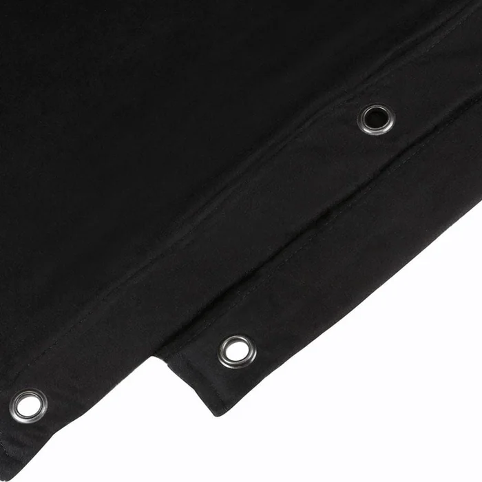 Dekomolton, flammhemmend imprägniert, 160-g-Qualität, als Vorhang, Backdrop oder für Dekozwecke. Der Stoff ist einseitig im 25-Zentimeter-Abstand geöst und mit einem zusätzlichen Gurtband hinterlegt, so dass er sich sowohl straff gespannt als auch mit lockerem Faltenwurf schnell und sicher anbringen lässt. Zum Einsatz kommen rostfrei beschichtete, brünierte Ösen mit 15 Millimeter Lochdurchmesser. Die Außenkanten sind gesäumt, die Unterkante ungesäumt, damit der Stoff schnell und einfach in der benötigten Länge selbst konfektioniert werden kann.