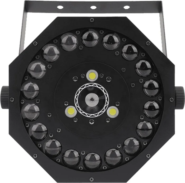 Der Algam Lighting Sunflower ist das ultimative Werkzeug, um jede Veranstaltung in einen unvergesslichen Moment zu verwandeln. Mit ihrer einzigartigen Kombination aus rotierendem Prisma, Strobe-Effekt und grünem Laser liefert die Sunflower atemberaubende, mehrfarbige Lichteffekte, die jede Tanzfläche zum Leben erwecken.