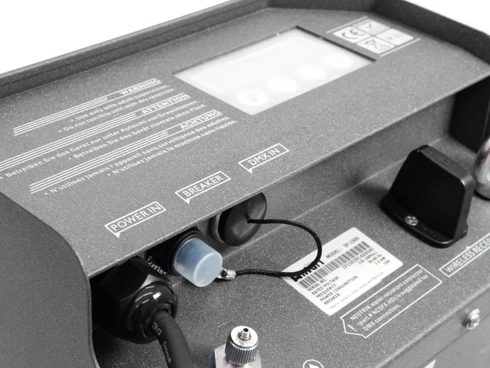 - 1500 Watt starke Outdoor-Nebelmaschine (IP63) mit Funksteuerung und DMX