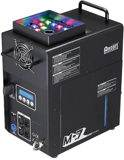 Die Antari M-7 ist eine professionelle aufrecht stehende Nebelmaschine mit hoher Ausgabeleistung und RGB-LEDs für die Erstellung von farbigen CO2-Effekten. Sie kann problemlos sowohl horizontal als auch vertikal sowie nach oben oder unten gerichtet eingesetzt werden. Das mechanische Design der M-7 wurde für Mietzwecke entworfen, da der Flüssigkeitstank sich in einem separaten Fach im Geräteinneren befindet. Dadurch wird der Transport erheblich vereinfacht, da nicht auf die Transportposition geachtet werden muss.