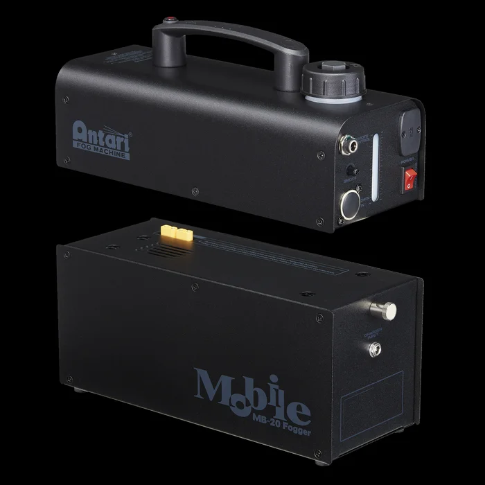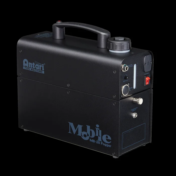 Beschreibung: Die Antari MB-20 ist eine kompakte und leichte akkubetriebene 600 Watt Nebelmaschine inklusive Akku, Ladegerät, 0,5 l Nebelfluid und Flightcase, geeignet für den mobilen Einsatz. Sie kann sowohl manuell als auch über DMX gesteuert werden. Drahtlose und kabelgebundene Remote-Lösungen sind optional erhältlich. Bei voller Leistung hält der Akku bis zu 12 Minuten, sein 0,4 Liter Tankinhalt kann im Dauerbetrieb bis zu 25 Minuten Nebel produzieren. Für den Dauerbetrieb ist optional eine Power Base erhältlich, mit der Sie den MB-20 direkt über ein Netzteil mit Strom versorgen können. Technische Daten: Stromversorgung: 100-240 V AC 50/60 HzStromverbrauch: 600 WStromeingang: Low Voltage DC plugHeizelement: 600 WAufwärmzeit: 0.1 minAusgaberichtung: ForwardFlüssigkeitsverbrauch: 16 ml/minLänge (mm): 293 mmHöhe (mm): 238 mmBreite (mm): 108 mmGewicht: 8.5 kgIP-Schutzart: IP20 (indoor use only)Steuermodus: DMX / RemoteDMX-Kanäle: 1Drahtlos: Optional