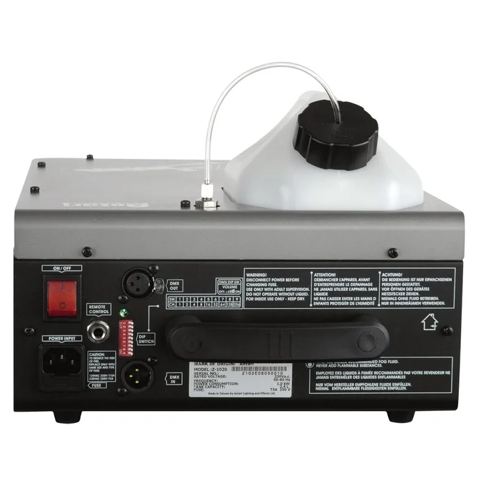 Die Steuerung der Maschine ist denkbar einfach: Nutzen Sie die mitgelieferte Fernsteuerung oder verbinden Sie die Z-1020 mit einem DMX-512 Controller für eine präzise Kontrolle über den Nebelausstoß. Mit einer Tankkapazität von 2,5 Litern und einem geringen Energieverbrauch bietet diese Nebelmaschine Leistung und Effizienz in einem.
