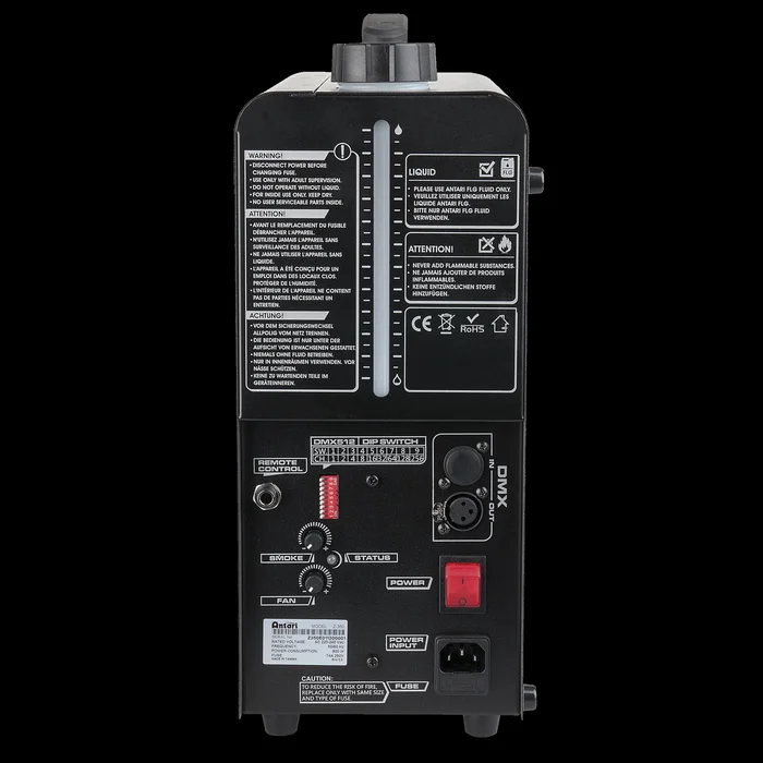 Beschreibung: Der Z-350 ist die neuste Kreation von Antari, einem Unternehmen mit jahrelanger Erfahrung in der Fazer-Entwicklung. Durch die neuartige Luftpumpentechnologie kann der Z-350 nicht nur trockenen Nebel ausgeben, sondern dient auch dazu, dass das Heizelement sich selbst reinigt. Der Z-350 ist mit einem Schlauch mit großem Durchmesser ausgestattet, wodurch die Gefahr, dass das Heizelement verstopft, erheblich verringert wird. Durch den extrem geringen Verbrauch von Nebelflüssigkeit, kann der Z-350 mit einem vollen Tank (1,3l) 430 Minuten lang bei voller Ausgabeleistung durchgehend Nebel erzeugen. Der neue integrierte DMX-Chip ist mit neuen intelligenten Funktionen ausgestattet. Sobald der Z-350 ein DMX-Signal erhält, schaltet er sich automatisch ein und beginnt mit der Vorheizung. Sobald das DMX-Signal unterbrochen wird, startet er automatisch den Selbstreinigungsprozess und versetzt sich dann in den Ruhemodus. Die Maschine wiegt insgesamt gerade einmal 8,7kg und ist dadurch einfach zu transportieren. Technische Daten: Stromversorgung: 220-240 V AC 50 HzStromverbrauch: 800 WStromeingang: IEC DMX-Anschluss: XLR 3P In/OutHeizelement: 800 WAufwärmzeit: 4 minAusgabekapazität: 85 m³/minAusgaberichtung: ForwardFlüssigkeitsverbrauch: 3 ml/minTankinhalt: 1.3 LLänge (mm): 320 mmHöhe (mm): 395 mmBreite (mm): 161 mmGewicht: 8.8 kgSteuermodus: DMX / Manual / RemoteDMX-Kanäle: 2