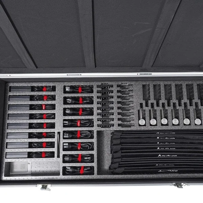 Die INFINIBAR PB6 8-Light Kit enthält acht dieser Aputure-Pixelleisten mit jeweils 60 cm Länge und 48 individuellen RGB-Pixel-Lichtzonen. Zu deren Besonderheiten gehört die Möglichkeit, mehrere INFINIBARs variabler Längen über unterschiedlich geformte Verbindungsstücke* zusammenzuschließen und so kreative Formen und Effekte zu erschaffen. Die Lücken dieser Verbindungen werden durch das integrierte, stufenloses Blending Design optisch weitgehend eliminiert. Die 48 RGB-Pixel-Lichtzonen bieten damit nahtlose Pixel-Effekte.