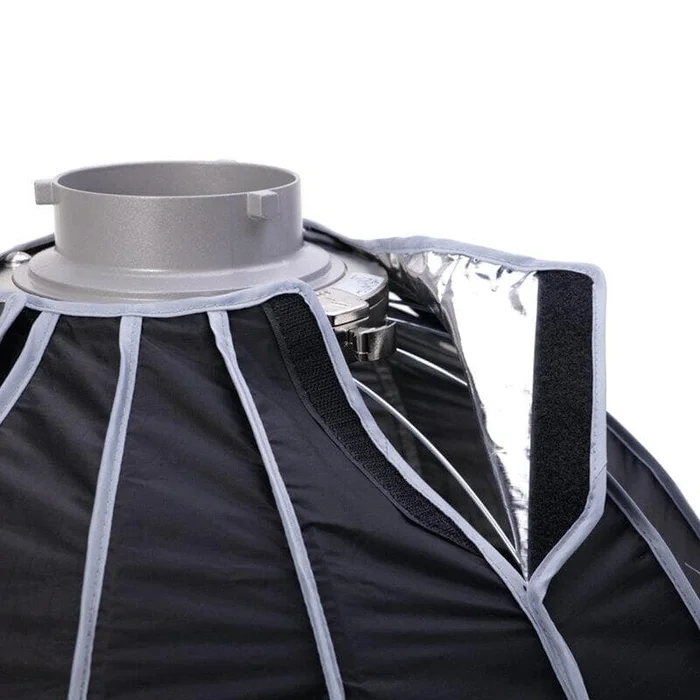 Erzeugen Sie das perfekte weiche Licht. Sie können zwischen zwei Diffusionsstärken wählen, um das Licht passgenau einzustellen. Zusätzlich hilft das 40° Light Control Grid, um mehr Kontrast und Tiefe im Bild zu erzeugen. Die Softbox kreiert mit ihrem runden 32-seitigen Aufbau absolut runde und weiche Reflexionen. Dies kann ringförmige Augenlichter erzeugen oder beispielsweise Lichtquellen wie die Sonne imitieren. Zusätzlich ist der Light Dome III stabiler als sein Vorgänger: Die neuen 16 Stahlstäbe sind robuster, beständiger und behalten die gewünschte Parabelform besser bei.