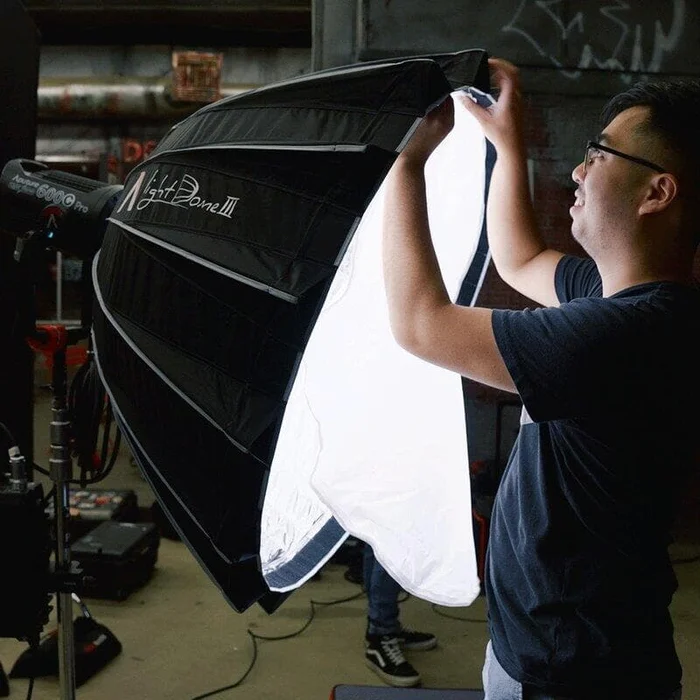 Der Light Dome III ist Aputures Spitzen-Softbox für LED-Leuchten mit Bowens Mount. Dank des neuen, sehr einfach klappbaren Designs lässt sich der Light Dome III innerhalb von Sekunden auf- und abbauen. Das spart wertvolle Zeit am Set, was vor allem Profis zu schätzen wissen.