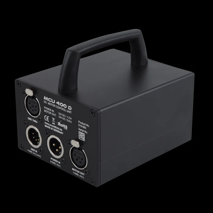 Technische Daten: Stromversorgung: 240 VAC 50-60 HzStromaufnahme: 10 WStromeingangsstecker: XLR 3PDMX Verbinder: XLR 5P In/OutHöhe (mm): 105 mmBreite (mm): 105 mmTiefe (mm): 127 mmGewicht: 1.3 kgmaximale Last: 500 kgDrehgeschwindigkeit: 0.5 rpm