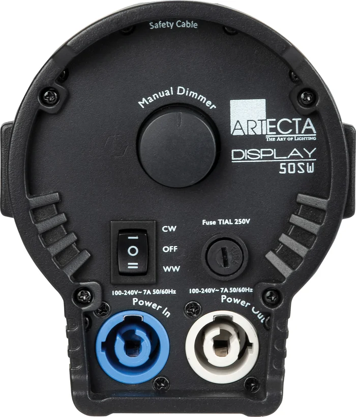 Jeder Artecta Display Scheinwerfer ist kompakt und dennoch für den professionellen Einsatz geeignet. Sie haben eine extrem genaue Farbwiedergabe und zuverlässige manuell steuerbare Funktionalitäten. Auf der Rückseite jedes Gerätes befindet sich ein Schalter. Mit diesem können Sie einfach zwischen einer warmweißen (3000 K) und kaltweißen (6000 K) Farbtemperatur umschalten. Außerdem verfügt jedes Modell über einen Dimmer, mit dem Sie die Lichtintensität sehr präzise steuern können.