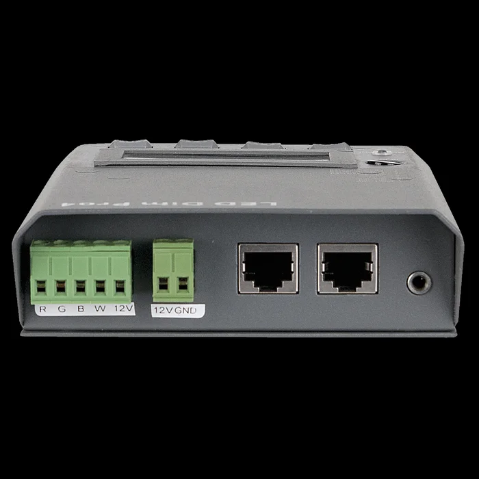 Beschreibung: Der LED Dim Pro ist ein äußerst benutzerfreundlicher LED-Dimmer für RGB- und RGBW-Streifen. Mit ihm können 12V- oder 24V-LED-Streifen mit konstanter Spannung per DMX gesteuert werden. Er kann aber auch als eigenständiger Controller für eine Szene oder eine Chase eingesetzt werden. Die Szene oder Chase kann vorprogrammiert werden und wird aktiviert, sobald kein DMX-Signal empfangen wird. Durch das große Display und die Sprachauswahl (NL , EN, DE) ist das Gerät sehr einfach zu bedienen. Es ist für 20 bei 12V oder bei 24V geeignet. Es kann z. B. für 4 x 5A, 2 x 8A oder 3 x 6A eingesetzt werden. Die Gesamtlast darf nur nicht größer als 20A und die Kanallast nicht größer als 8A sein. Das Gerät muss über eine externe (optionale) Stromversorgung versorgt werden, die je nach dem angeschlossenen LED-Streifen entweder 12V oder 24V betragen kann. Technische Daten: Steuermodus: DMXDMX-Kanäle: 1 / 4Protokolle: DMXStromversorgung: 12-24 V DCAusgangsspannung: 12-24 V DCMaximaler Ausgangsstrom (A): 8 ALänge (mm): 195 mmHöhe (mm): 80 mmBreite (mm): 140 mmIP-Schutzart: IP20 (indoor use only)