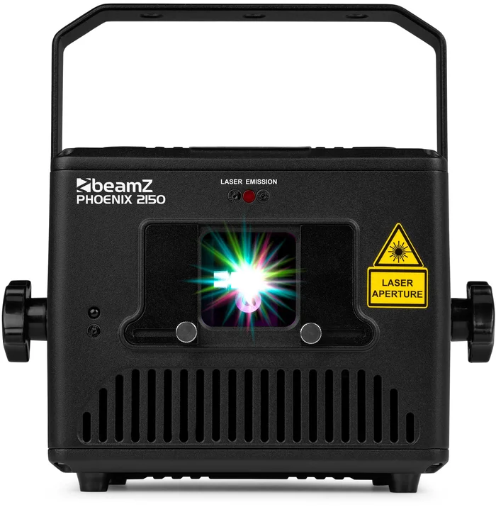 Die beamZ Phoenix Laser Serie bietet leistungsstarke Animationslaser mit über hundert integrierten Effekten und Mustern. Diese Laser verfügen über eine analoge Modulation, die die Darstellung von bis zu 16,7 Millionen Farbtönen ermöglicht und die Möglichkeit bietet, den Laserstrahl zur Sicherheit des Publikums zu „dimmen“. Auf der Rückseite befinden sich ein DMX-Ein-/Ausgang mit 3-poligen XLR-Anschlüssen und ein ILDA-Ein-/Ausgang, der Standard für die Verbindung von Laserdisplays mit Steuergeräten über ein ILDA-Kabel. Bei Verwendung eines DMX-Controllers bieten die Phoenix-Laser 10 oder 34 DMX-Kanäle. Zusätzlich können diese Laser dank des eingebauten Mikrofons im Soundaktivierungsmodus betrieben werden. Im Lieferumfang enthalten sind 2 Schlüssel für den Schlüsselschalter, ein Remote-Interlock-Bypass und eine Fernbedienung.