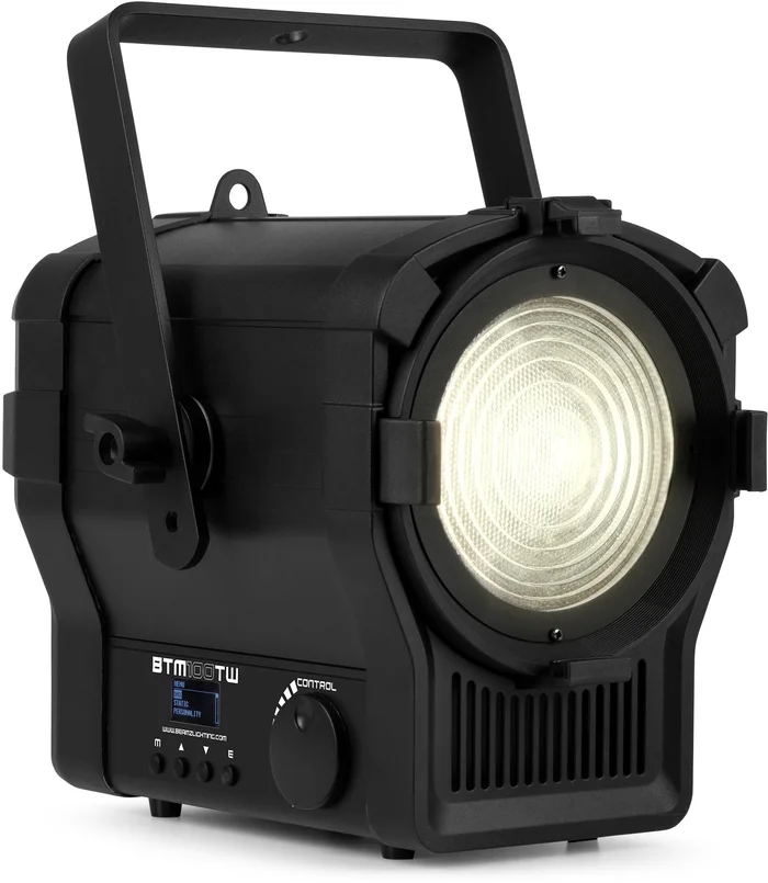 Der BeamZ BTM100TW ist mit einer leistungsstarken, einstellbaren COB-LED ausgestattet, die ein gleichmäßiges, abstimmbares CW/WW-Weißlicht (2600K – 5800K) erzeugt. Diese Fresnel-Serie ist ein idealer Ersatz für herkömmliche Fresnel-Scheinwerfer. Der BTM100TW ist mit einer hochwertigen Optik und einer motorisierten 15-55-Grad-Zoomfunktion ausgestattet, dimmbar und als Strobe mit bis zu 25 Blitzen pro Sekunde betreibbar. Ideal für den Einsatz in Theatern, Studios oder jeder anderen Bühnenumgebung, die eine gleichmäßige, warmweiße Lichtleistung von einer energiesparenden Leuchte mit außergewöhnlich langer Lebensdauer erfordert. Mit Powerconnector-Ein- und Ausgang und DMX-Steuerung.