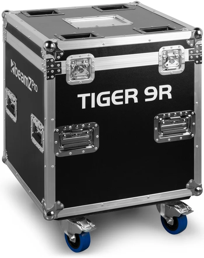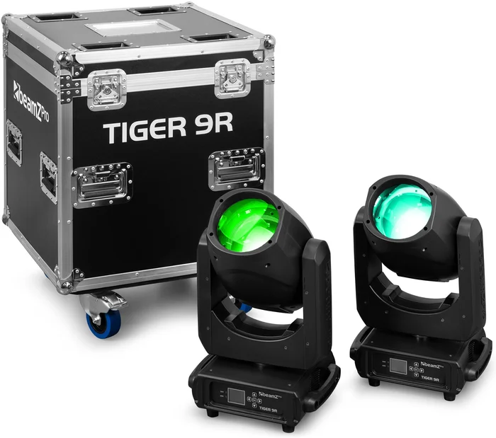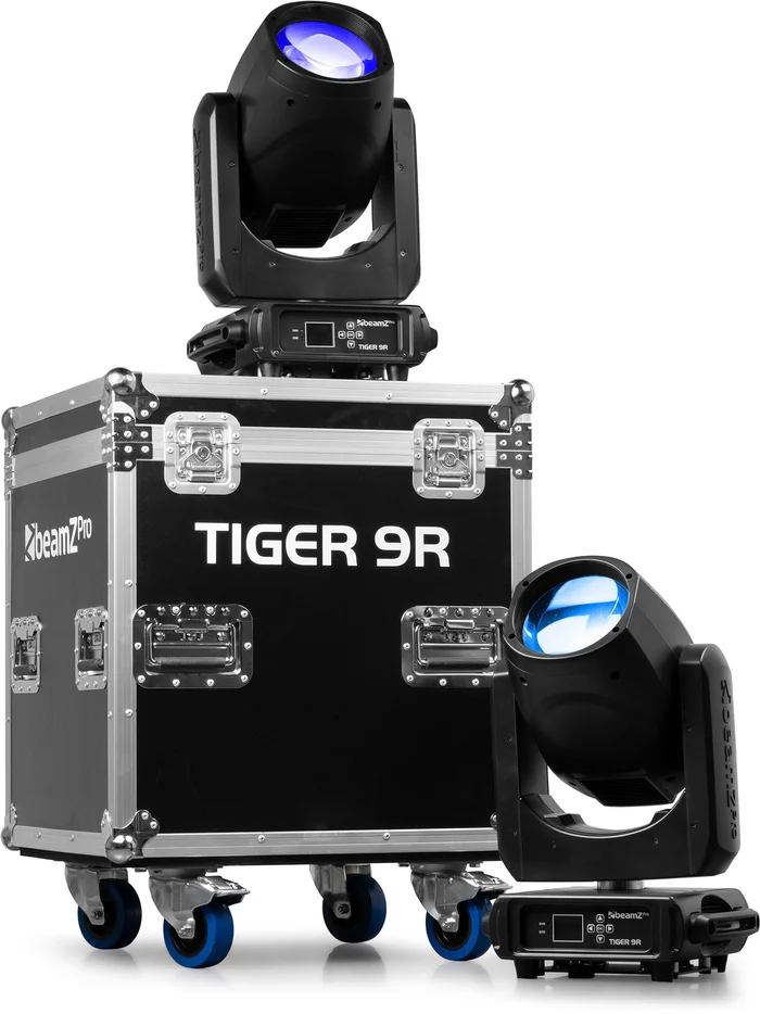 Der Tiger 9R ist ein leistungsstarker Moving Head, der mit seiner 9R 260-W-Hochdruckentladungslampe eine beeindruckende Lichtleistung erzeugt. Dieser vielseitige Moving Head verfügt über eine umfassende Palette an Effekten, darunter Farbmischung, Frost-Effekt, verschiedene Gobos und Prismen, mit denen Anwender ihre Lichtdesigns präzise steuern können. Der Tiger 9R verfügt über ein Gobo-Rad mit 14 Mustern plus einer offenen Position und ein Farbrad mit 14 Farben plus einer offenen Position, die unendliche kreative Möglichkeiten bieten. Die Möglichkeiten werden durch die motorisierten rotierenden Prismen mit 8 und 48 Facetten noch erweitert, die faszinierende und dynamische Lichtshows ermöglichen. Der Tiger 9R arbeitet nahtlos im DMX- oder Standalone-Modus und bietet Flexibilität bei der Einrichtung und Bedienung. Entwickelt für Einfachheit und Benutzerfreundlichkeit! Dies ist ein Set aus 2 Moving Heads, die in einem passgenauen Flightcase geliefert werden.