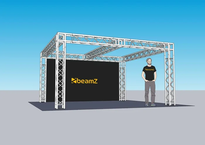 Der BeamZ Professional Truss Messestand B ist ein komplettes System mit Mittelstrebe. Es beinhaltet alles, was sie für den Aufbau benötigen. Ideal zur Produktpräsentation auf Messen, als Ground Support für eine Tanzfläche oder als Installation in einen Club oder eine Diskothek.