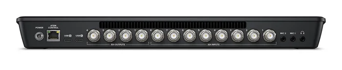 Das All-in-one-Design der ATEM SDI Mischer beherbergt sowohl ein Bedienfeld als auch diverse Anschlüsse. Das Bedienfeld bietet übersichtliche Tasten zur Auswahl von Quellen, Videoeffekten und Übergängen. Die großen Quelltasten ertastet der Moderator auch ohne hinzusehen, und kann die Bildmischung selber besorgen. Geboten werden sogar Tasten zum Tonmischen. Die ATEM SDI Pro und Extreme Modelle haben zusätzlich Tasten für die Aufzeichnungs- und Streaming-Steuerung sowie Auswahltasten. Damit schalten Sie die Ausgabesignale zwischen direkten Kamerafeeds, Programm und Multiviewer um. An der Rückseite befinden sich SDI-Anschlüsse für Kameras oder Computer, extra Mikrofonbuchsen, ein USB-Port für Webcam-Ausgaben und mehrere SDI-Aux-Ausgänge fürs Programmvideo.