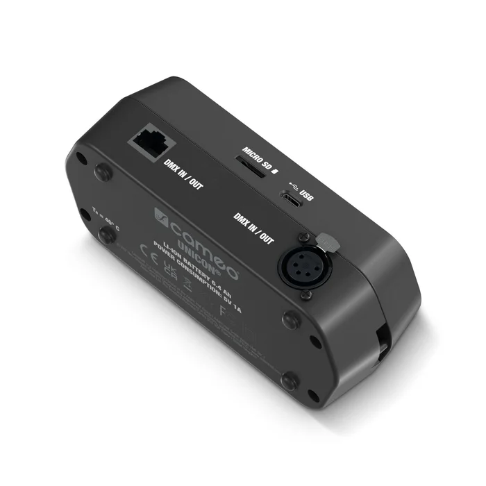 Der Cameo UNICON® ist ein professioneller DMX/RDM-Controller, der speziell für die Installationsbeleuchtung entwickelt wurde und Dein unverzichtbarer Begleiter im Alltag als Lichttechniker ist. Mit diesem leistungsfähigen Steuergerät hast Du volle Kontrolle über jegliche Einstellmöglichkeiten Deiner Scheinwerfer. Der große TFT-Touchscreen zeigt Dir die Menüstruktur auch bei direktem Sonnenlicht klar und deutlich an. So navigierst Du per Touch oder mit dem Encoder-Rad kinderleicht durch das Menü und lässt Deiner Kreativität freien Lauf. Der UNICON® ist sowohl mit 5-Pol DMX- als auch mit RJ45-Kabeln kompatibel und kann bei RDM-kompatiblen Geräten sogar Sensordaten und DMX-Modus und -Adresse auslesen. Wenn Du den UNICON® über den USB-C Port angeschlossen hast, wird er als microSD Kartenlesegerät erkannt und der integrierte Li-Ion Akku wird nebenbei geladen. Du brauchst einen professionellen, zuverlässigen und leistungsfähigen DMX/RDM-Controller? Dann ist der Cameo UNICON® genau das Richtige für Dich!