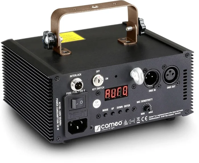 Der WOOKIE 150 G besitzt eine Leistung von 150 mW und einen grünen DPSS-Laser mit 3 mm Strahldurchmesser und extrem geringer Divergenz von nur 1 mrad. Ausgestattet mit 32 lebhaften Presets und 5 Kpps schnellen Schrittmotoren mit 60° Scan-Bereich, erzeugen die Laser der Wookie-Serie dynamische, leuchtende Animationen mit gestochen scharfen Strahlen. Sie lassen sich über DMX im 3-Kanal- und 9-Kanal- Modus oder das integrierte, in der Empfindlichkeit regelbare Mikrofon steuern und als Master, Slave oder Standalone einsetzen. Die kompakten, stabilen Gehäuse der Wookie-Laser sind aus leichtem Aluminium und besitzen 3-polige DMX-Anschlüsse, eine IEC-Netzbuchse und einen verstellbaren Trage- und Montagebügel. Ein Schlüsselschalter schützt vor unbefugtem Betrieb, und das helle Display mit vier Tasten ermöglicht eine problemlose manuelle Einstellung. Alle Wookie-Laser werden mit einer praktischen Infrarot-Fernbedienung geliefert.Spezifikationen: