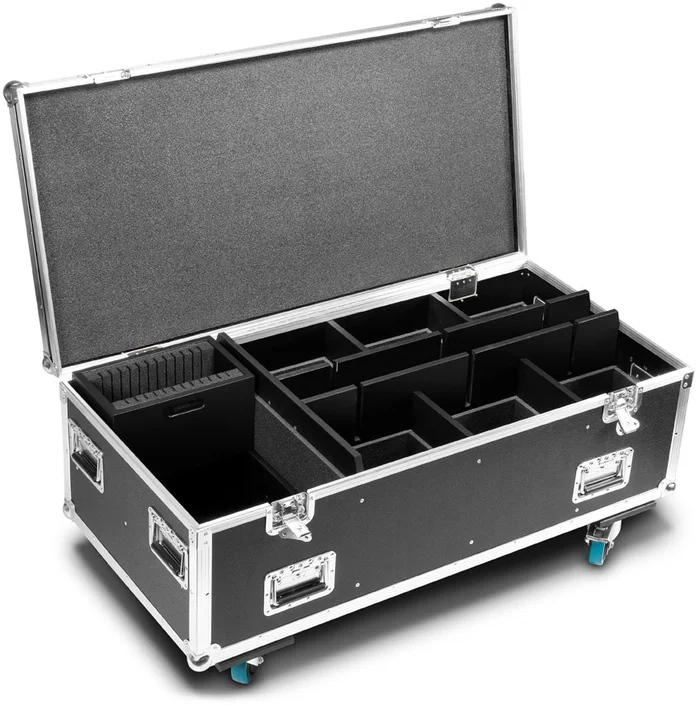 Dieses robuste Flightcase ist die perfekte Lösung zum sicheren Transport, Lagern und Aufladen von sechs Cameo ZENIT B60 Scheinwerfern. Es ist aus 7 mm starkem Birkenmultiplex, innen mit Schaumstoff gepolstert und mit stabiler Adam Hall Hardware wie acht gefederten Klappgriffen und vier hochbelastbaren 100 mm Lenkrollen konstruiert. Das Case ist zudem mit einem Zubehörfach, einem herausnehmbaren Fach für 12 Streulinsen und Radmulden im Deckel ausgestattet, die ein perfektes Stapeln erlauben. Es ist zum bequemen Laden der batteriebetriebenen Scheinwerfer im Case vollständig vorverkabelt.