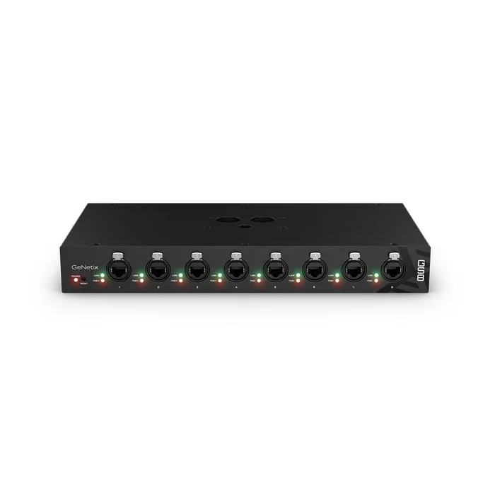 Der GeNetix GS8 verfügt über einen robusten PowerCon True1-Netzeingang und verriegelbare Ethernet-Anschlüsse, die eine sichere und stabile Verbindung gewährleisten. Mit seiner kompakten Bauweise und der Möglichkeit zur Desktop- oder 19″-Rackmontage (1HE) bietet dieser Switch flexible Installationsoptionen für verschiedene Einsatzszenarien. Ob in professionellen AV-Installationen, Unternehmensnetzwerken oder bei Veranstaltungen – der GeNetix GS8 ist die ideale Wahl für eine zuverlässige und leistungsstarke Netzwerklösung.