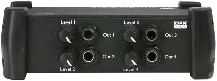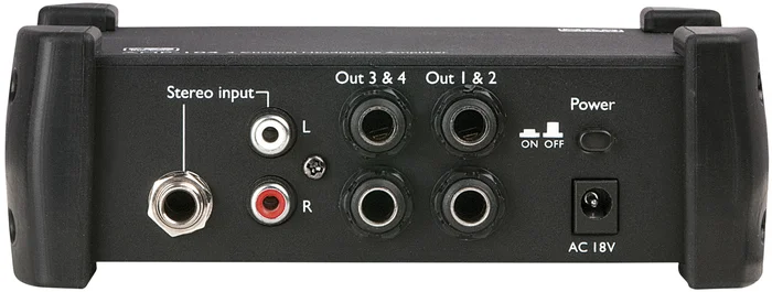 Der DAP AMP-104 ist ein 4-Kanal-Kopfhörerverstärker zur Erweiterung von vier 6,3 mm Klinken-Stereoausgängen mit individueller Lautstärkeregelung. Er verfügt sowohl über RCA- als auch über 6,3-mm-Klinken-Stereo-Eingänge, so dass Sie ihn für mehrere Anwendungen einsetzen können. Die Kopfhörer können beidseitig in 2er-Gruppen angeschlossen werden, so dass insgesamt 8 Ausgänge zur Verfügung stehen (4 Lautstärkeregler für je 2 Ausgänge).Technische Daten: