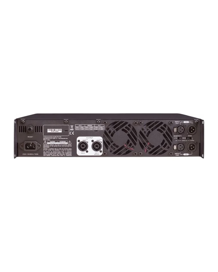 Die Verstärker verfügen über ein robustes 2 HE Ganzstahlgehäuse, das die strukturelle Steifigkeit gewährleistet. Die geräuscharmen Lüfter bieten sowohl leisen als auch kühlen Betrieb. Der Verstärker verfügt über rückseitig angeordnete Schalter, die die Auswahl des Betriebsmodus (Bridge, Stereo oder Parallel) und die Auswahl der Eingangsempfindlichkeit ermöglichen.