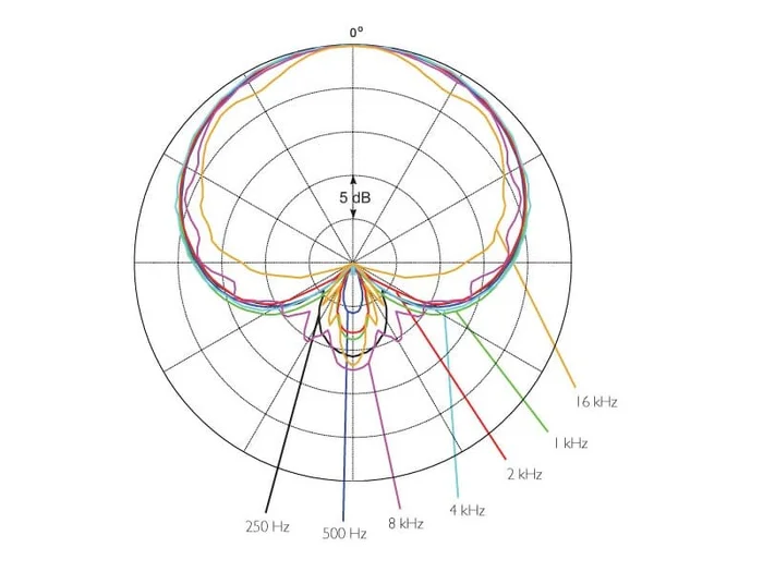 Wie herkömmliche Supernierenmikrofone verfügt auch die d:facto-Serie™ über eine hohe Seiten- und Rückwandunterdrückung mit einer Dämpfung von mindestens 9 dB zu den Seiten. Es ist jedoch nicht an die weniger wünschenswerten Aspekte der Superniere gebunden, wie z. B. die unkontrollierten und nichtlinearen hinteren Keulen, die Rückkopplungen von Bühnenkeilen erzeugen können, da es eine plötzliche Hochfrequenzspitze auf der Rückseite des Mikrofons gibt.