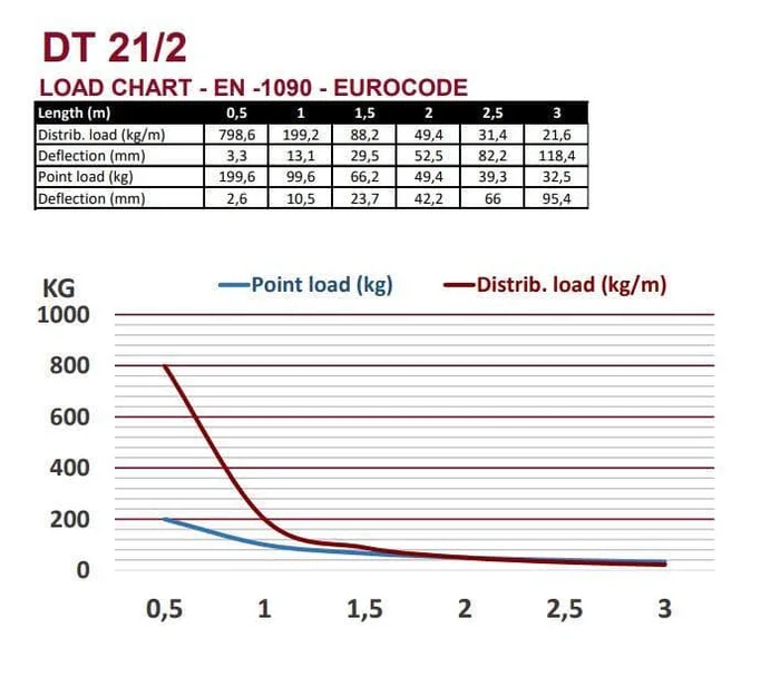 Die DT21-Serie ist ein 1-Punkt-Traversensystem das mit einem konischen Verbinder, 2 Bolzen und 2 Splinten verbunden wird. Der Vorteil beim Schnellverbindersystem liegt darin, dass es kraftschlüssig mit dem Gurtrohr (auch Tragrohr oder Hauptrohr genannt) abschließt und eine schnelle Montage beim häufigen Auf- und Abbau ermöglicht. Dasi Gurtrohr ist aus 35 mm Aluminiumrohr mit 2 mm Wandstärke gefertigt und gibt diesem System ein hervorragendes Gewichts-Belastbarkeitsverhältnis.