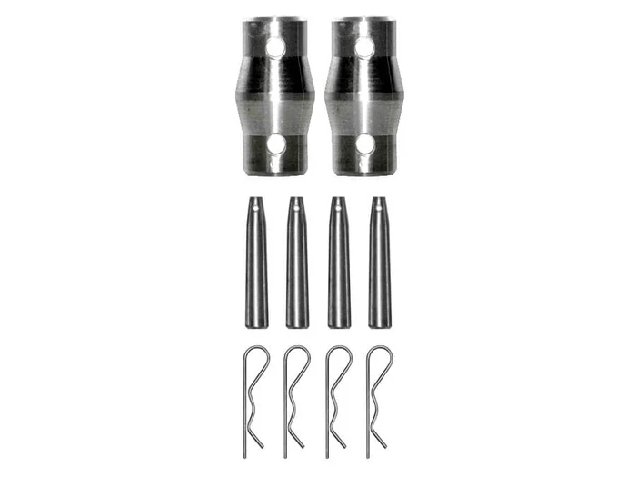 Lieferung inklusive Verbinderset bestehend aus: 2 konischen Verbindern, 4 Bolzen und 4 Sicherungssplinten