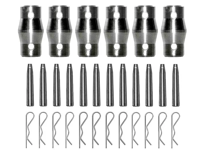 - Lieferumfang: 6 Kegel, 12 Stahlstifte, 12 Sicherheitsclips