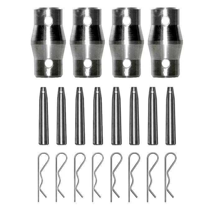 - Lieferumfang: 4 Kegel, 8 Stahlstifte, 8 Sicherheitsclips