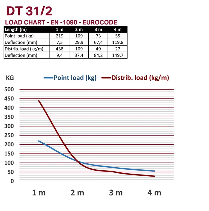 Das DURATRUSS DT31/2 ist ein 1-Punkt-Traversensystem, auch „Rohr“ genannt, das mit einem konischen Verbinder, Schrauben und Stahlstiften miteinander verbunden ist. Dieses Schnellverschlusssystem schließt kraftschlüssig mit dem Gurtrohr und ermöglicht einen schnellen Aufbau bei häufigem Auf- und Abbau. Das 50mm Aluminium-Gurtrohr mit einer Wandstärke von 2 mm verleiht diesem System ein hervorragendes Belastbarkeitsverhältnis.