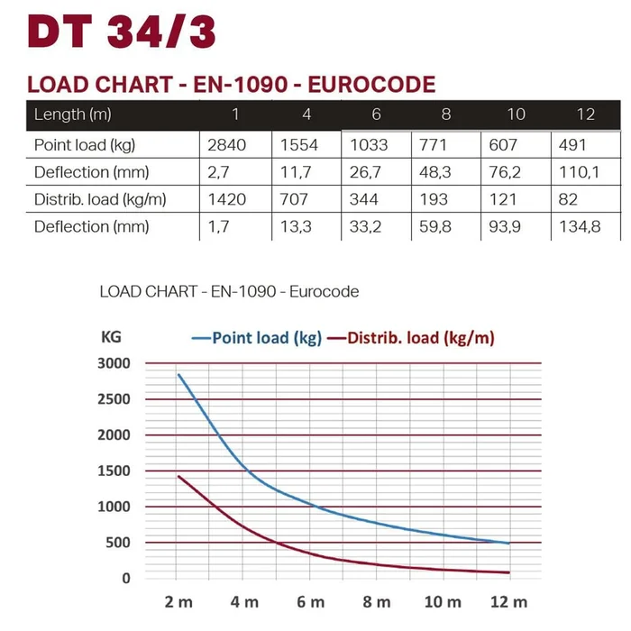 Das DT34/3 System ist ein 4-Punkt-Traversensystem, das mit konischen Verbindern, Bolzen und Sicherungsstiften verbunden wird. Dieses Schnellverschlusssystem schließt kraftschlüssig mit dem Gurtrohr und ermöglicht einen schnellen Aufbau bei häufigem Auf- und Abbau. Die Hauptrohre bestehen aus 50mm Aluminiumrohr mit einer Wandstärke von 3mm und verleihen diesem System ein hervorragendes Verhältnis von Festigkeit zu Gewicht. Die Streben haben einen Durchmesser von 20 mm bei einer Wandstärke von 2 mm. Jedes Traversenstück enthält alle erforderlichen konischen Verbinder, Stahlstifte und Sicherheitsclips.