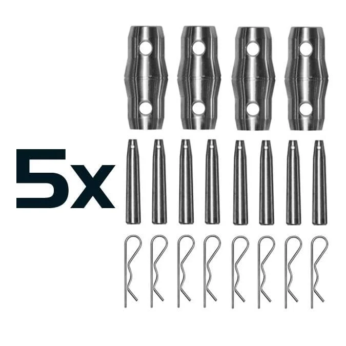 Lieferung inklusive Steckerset, bestehend aus: 20 konischen Verbindern, 40 Bolzen und 40 Sicherungsstiften.
