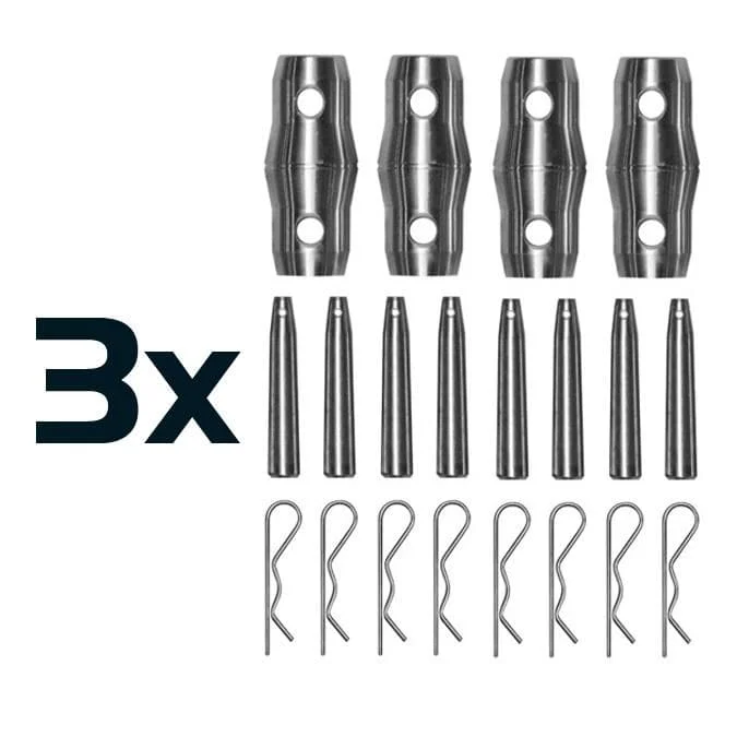 Lieferung inklusive Steckerset, bestehend aus: 12 konischen Verbindern, 24 Bolzen und 24 Sicherungsstiften.