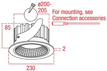 – Montage: 205 mm, rund