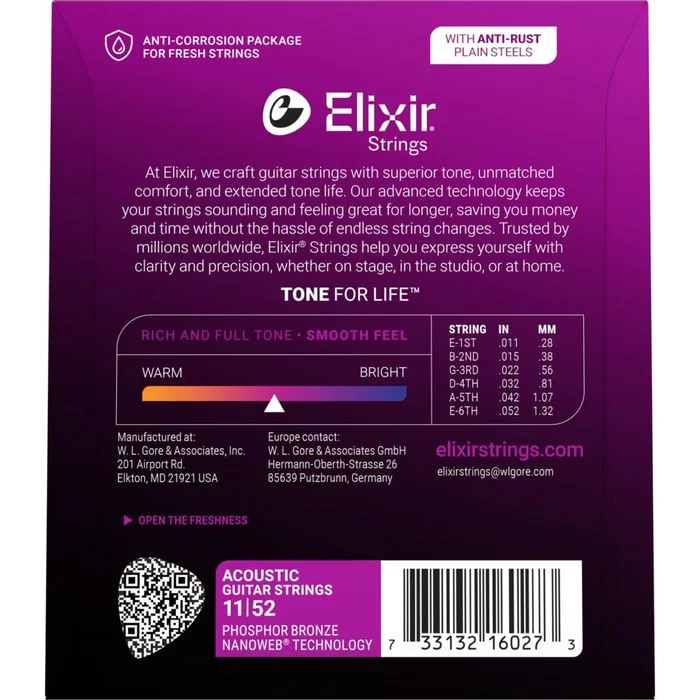 Dieser Phosphor Bronze Satz mit NANOWEB-Beschichtung liefert einen reichen, warmen Ton mit funkelnden Obertönen und exzellenter Langlebigkeit. Die ultradünne Beschichtung schützt vor Korrosion und Schmutz und erhält den vollen Klangcharakter 3-5x länger.